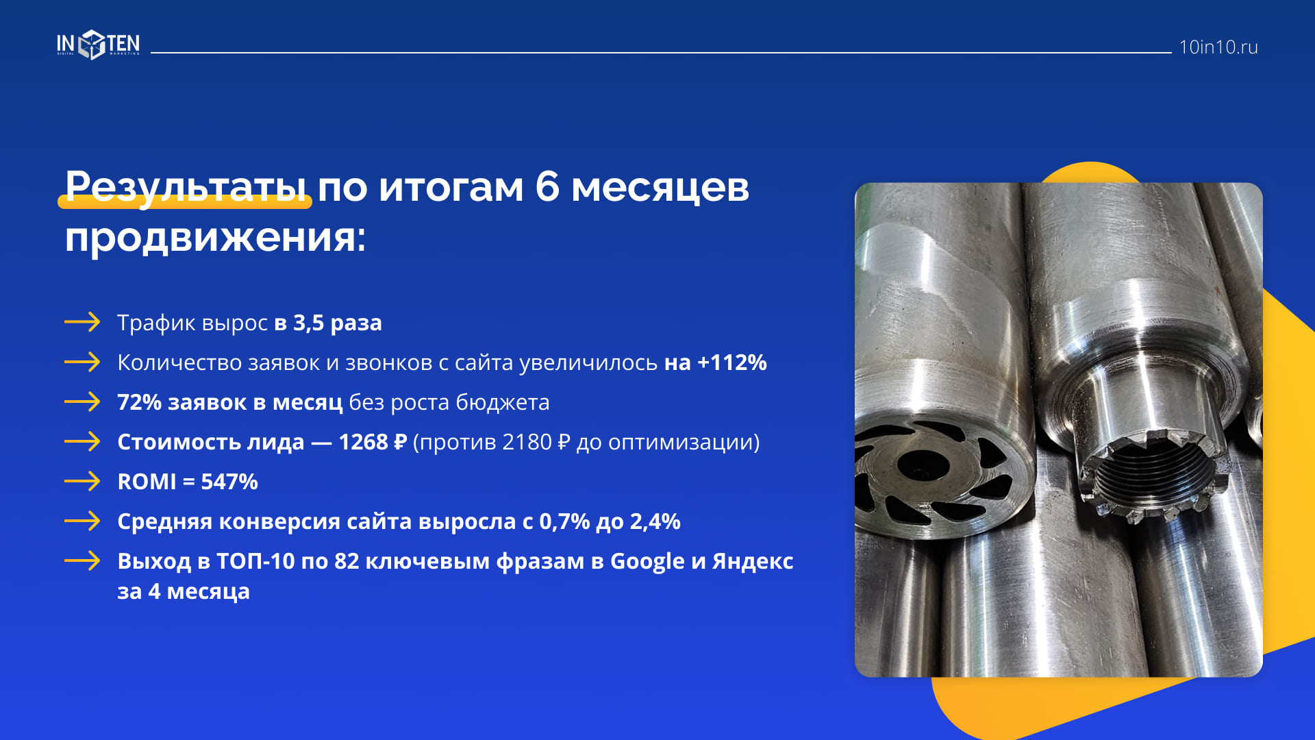 «Впервые за 2 года мы перестали дергать отдел продаж с вопросом, где заявки. Пошел стабильный поток. SEO наконец-то дало эффект — уже с 3-го месяца пошли целевые заявки напрямую с выдачи, а SERM добавил доверия. Сейчас уверенно масштабируемся в 3 новых региона».