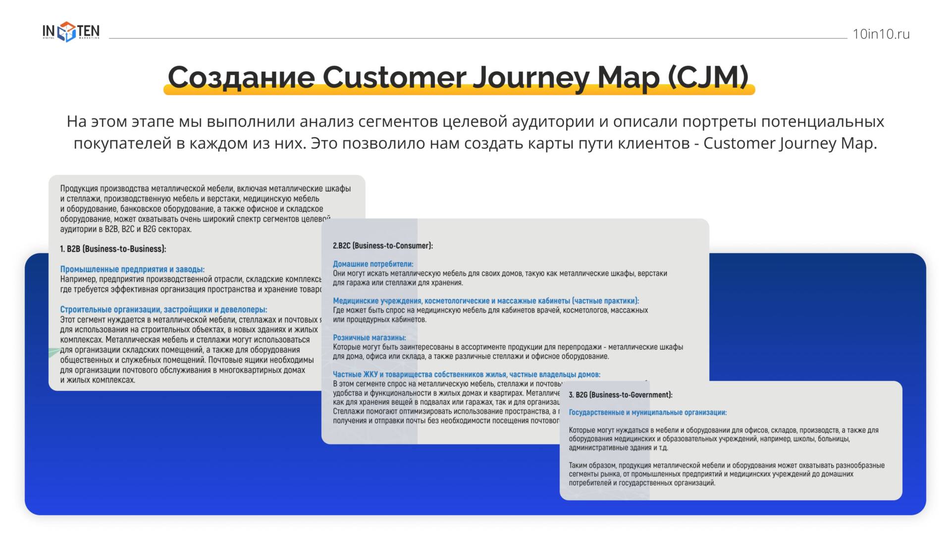 На этом этапе мы выполнили анализ сегментов целевой аудитории и описали портреты потенциальных покупателей в каждом из них. Это позволило нам создать карты пути клиентов – Customer Journey Map.