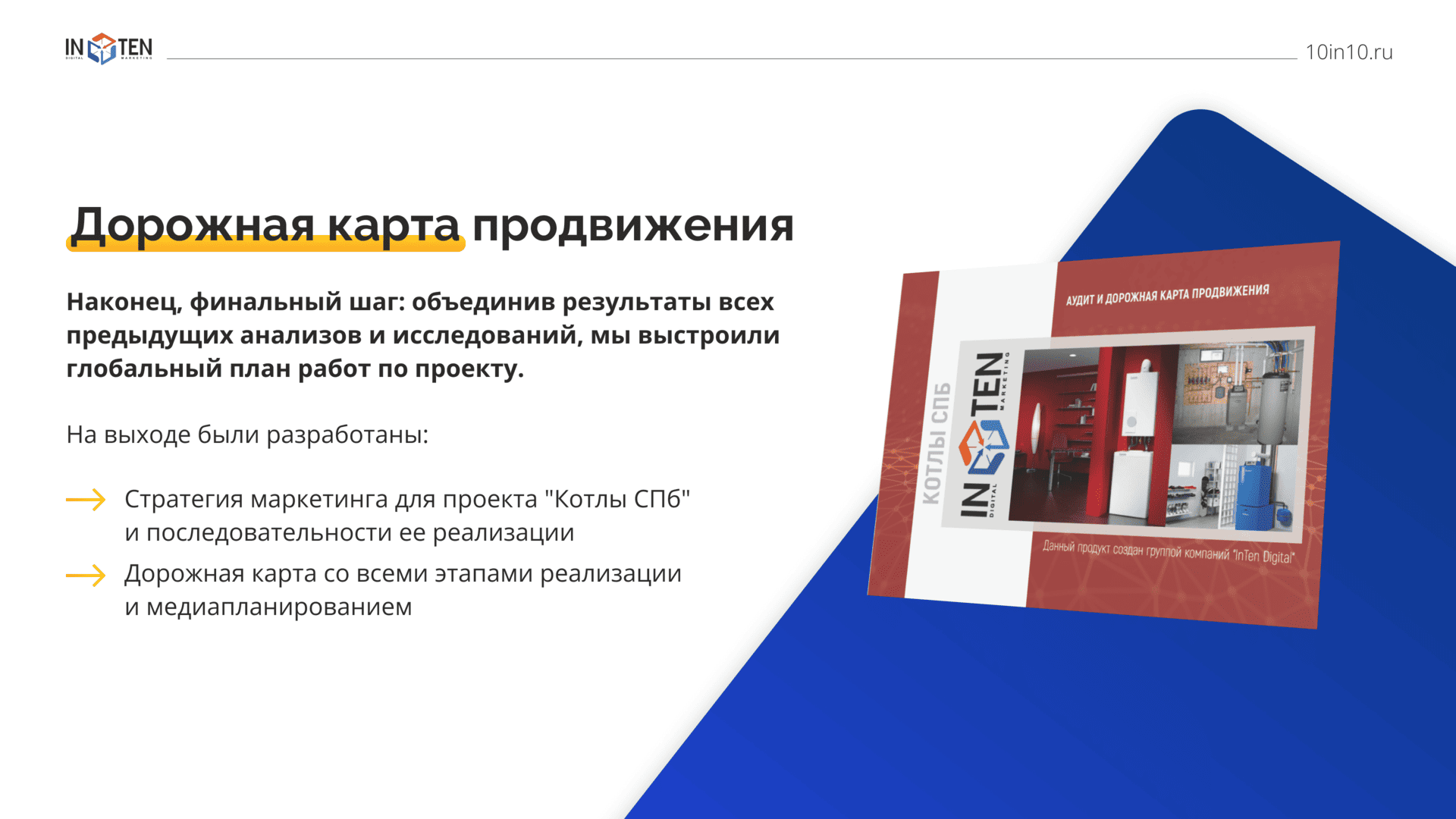 С момента постановки задачи клиентом стало понятно, что требуется комплексное продвижение. И начали мы, как всегда, с закладки прочного фундамента: провели маркетинговые исследования, углубленный конкурентный анализ с применением методики “тайного покупателя”. Кроме того, изучили, как и с помощью каких инструментов рекламируются конкуренты. Затем мы разработали маркетинговую стратегию и составили дорожную карту продвижения.