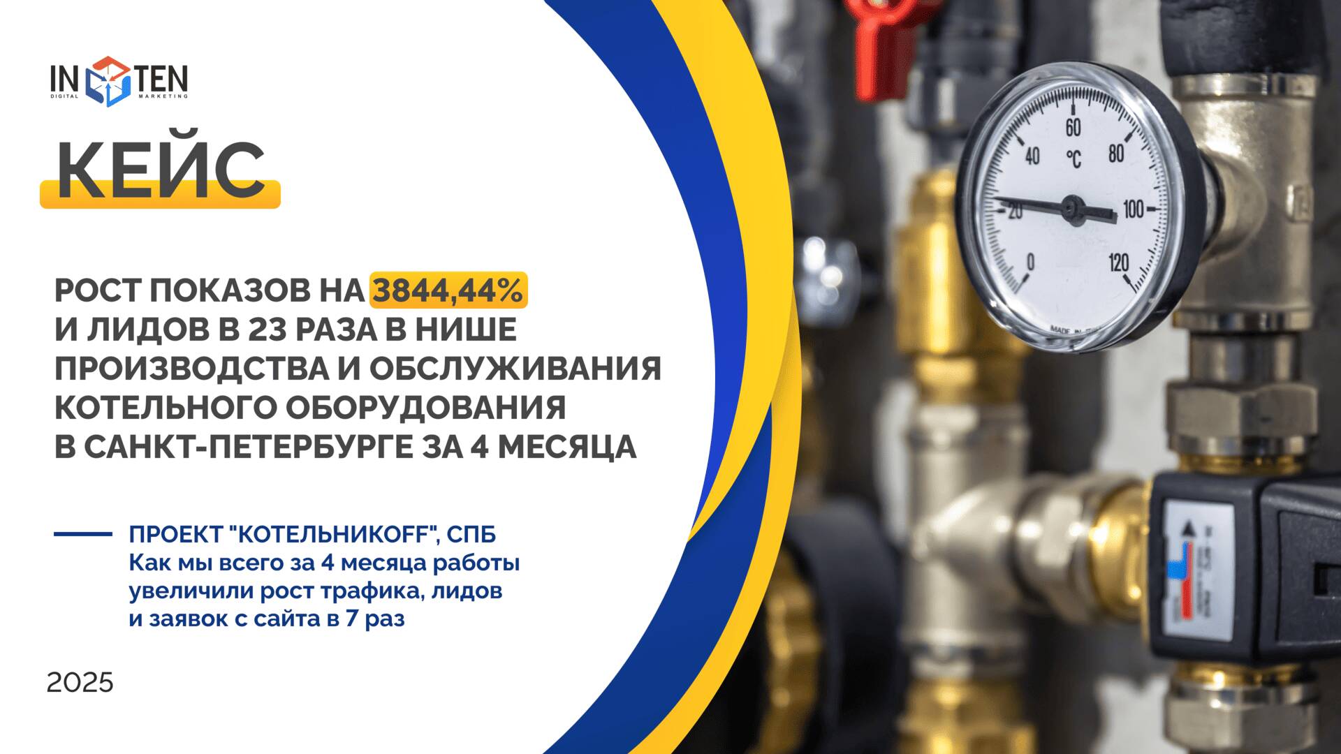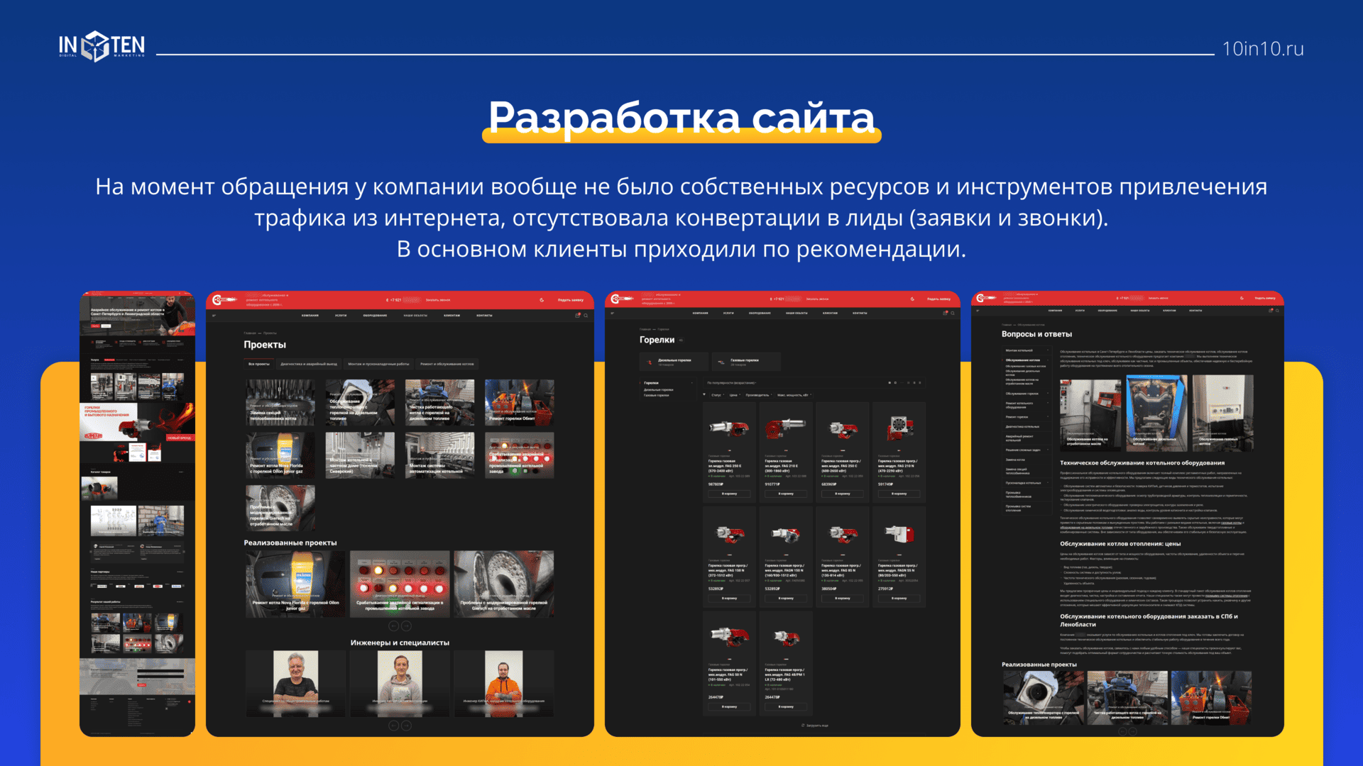 Тем не менее до сих пор встречаются фирмы, которые умудряются работать без сайта и не имеют практически никакого представления в интернете. Вот и к нам обратился такой клиент. Компания занимается монтажом, настройкой и ремонтом котельного оборудования в Санкт-Петербурге. Работает с 2006 года, специализируется на котлах, где топливом является отработанное масло. В 2024 году клиент решил перейти преимущественно в B2B-сегмент, а тут без сайта – ну извините – как без ног.